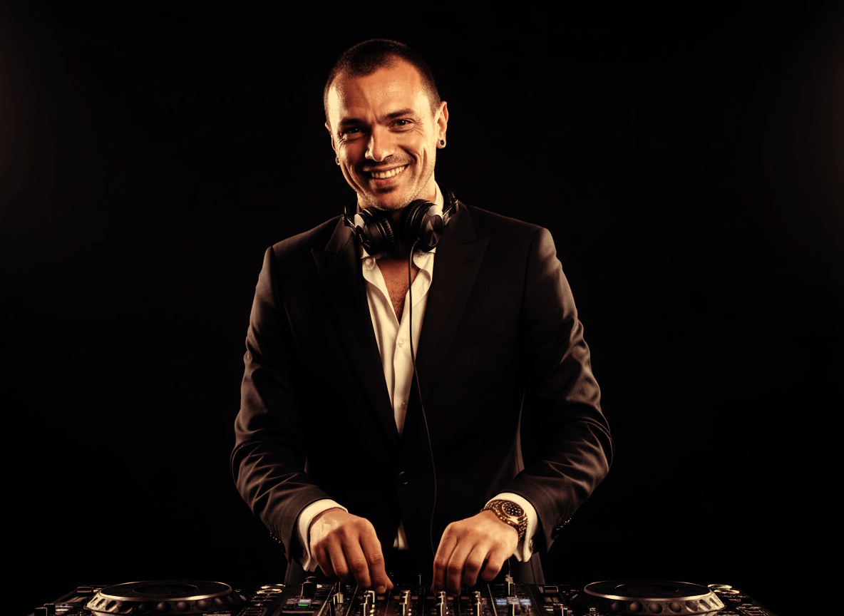 Angelo è rapido nel leggere le persone, nel capire cosa serve in quel momento, nel guidare l’energia senza forzarla. Sa quando è il momento di spingere e quando invece è giusto accompagnare, mantenendo sempre il controllo della festa.