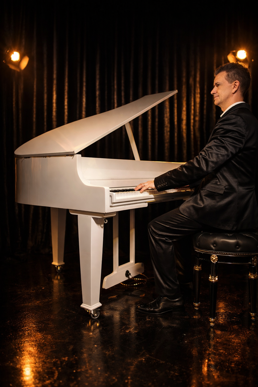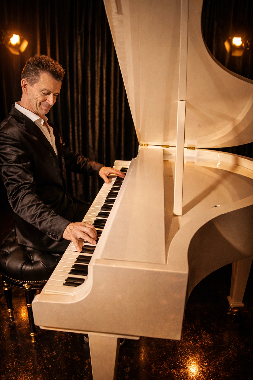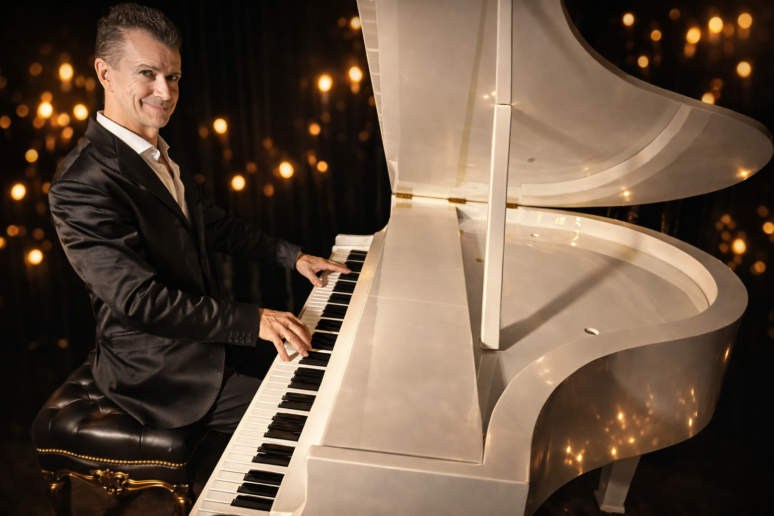Paolo è un pianista elegante e versatile, capace di donare un tocco di classe a ogni evento grazie al suo talento e alla presenza di un pianoforte a mezza coda. Con una tecnica raffinata e un repertorio che spazia dalla musica classica ai brani contemporanei, Paolo sa adattare il suo stile alle esigenze di ogni occasione, che si tratti di matrimoni, eventi aziendali o serate private. La sua passione per il pianoforte, unita al mezza coda, crea un’atmosfera unica e coinvolgente, trasformando ogni esibizione in un’esperienza indimenticabile.